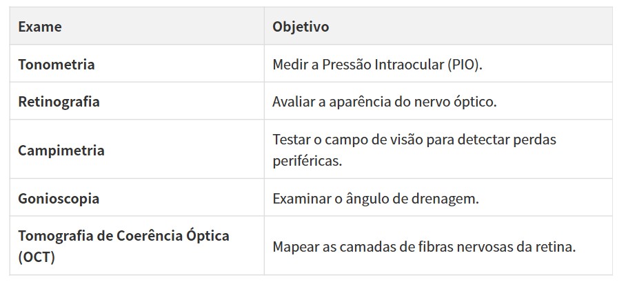 O diagnóstico precoce é crucial, pois a perda de visão causada pelo glaucoma é irreversível. O diagnóstico é feito por um oftalmologista através de um exame completo que inclui: