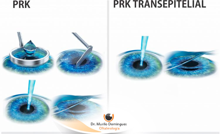 Na técnica PRK o excimer laser irá incidir diretamente sobre a córnea para remodelar sua superfície e corrigir o grau do paciente. Após o procedimento o cirurgião poderá colocar uma lente de contato para proteger a área tratada com o objetivo de reduzir o desconforto durante a cicatrização. A lente será removida por volta de 3 dias após a cirurgia.