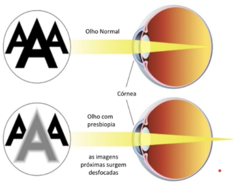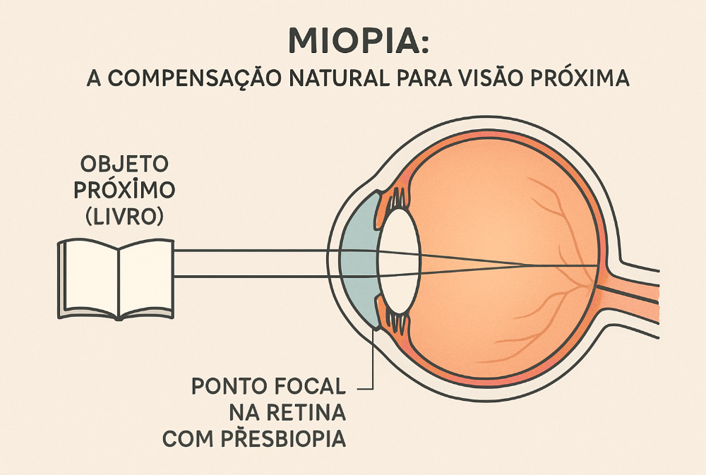 Em outras palavras: A miopia, que é um problema para longe, torna-se uma vantagem para perto na idade da presbiopia.
